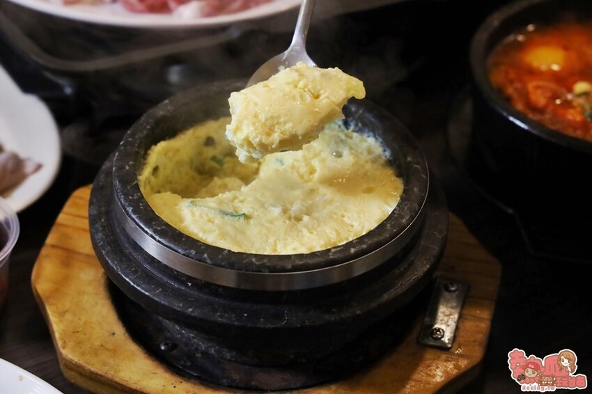 還有不能錯過的就是蒸蛋,以韓國石鍋製作,屬於現點現製作料理,一上桌就一直熱氣不斷,趁熱吃,滑嫩的口感真的超讚,讓愛蒸蛋的心愛a忍不住吃了好幾口呢~