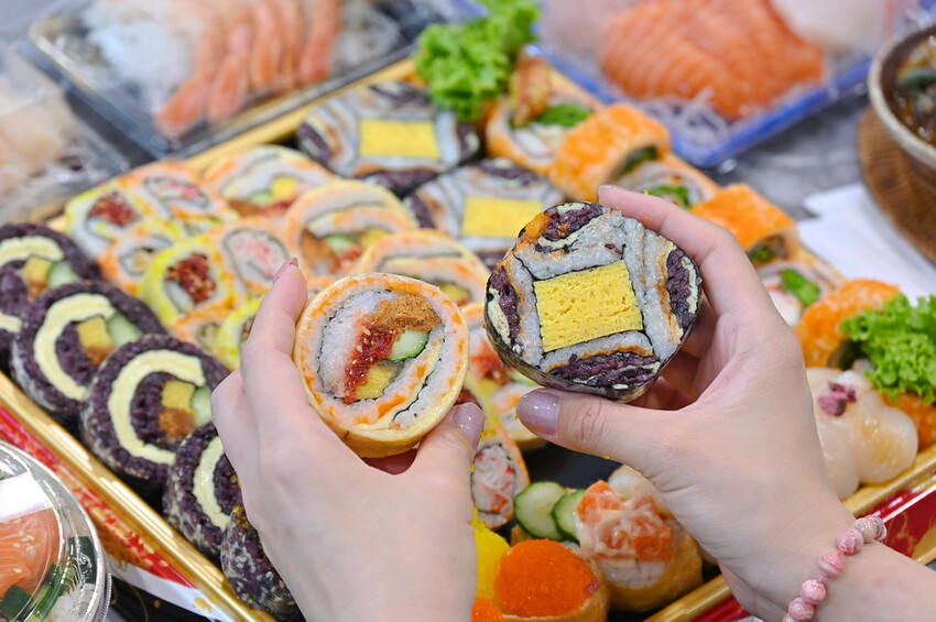 別看整個透明櫃裡擺滿滿的很快就被拿光了,週年慶期間推出1680元33卷壽司豪華盛合!只有週年慶買得到喔!