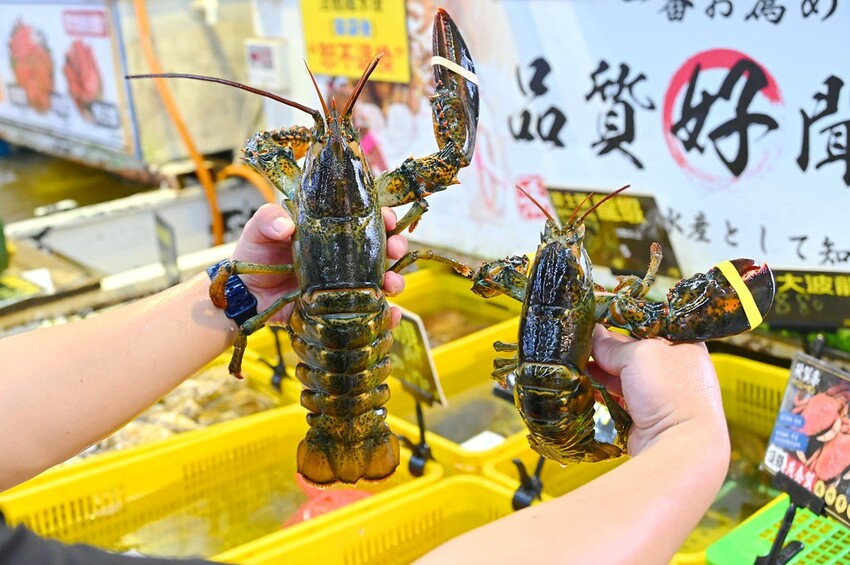 每隻抓起來的活龍蝦、活蟹都是漂亮又生猛,不過龍蝦有分大小隻價位不同,標價記得看清楚。左邊的特大波龍每斤880元,右邊正常尺寸波龍(約500-600g)每隻700元,買三隻優惠每隻650元。