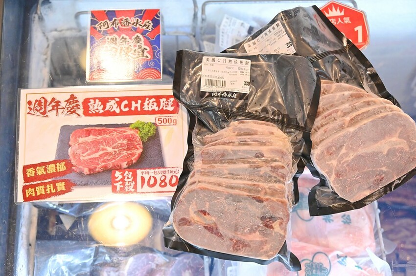 再來是中間冷凍商品買的人也不少,特別是價格很優惠,週年慶主打三種牛排超划算!