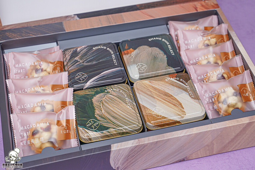 經典夏威夷豆塔、南棗核桃糕、夏威夷潛艇、太妃糖、堅果棒,豪華組合般的禮盒