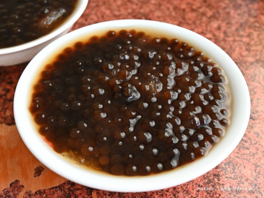 吃完大麵羹還有冰冰涼涼的粉圓冰可以解膩一下,這裡的粉圓應該是手工的,大小顆不一,晶瑩透亮的粉圓看起來很誘人呢