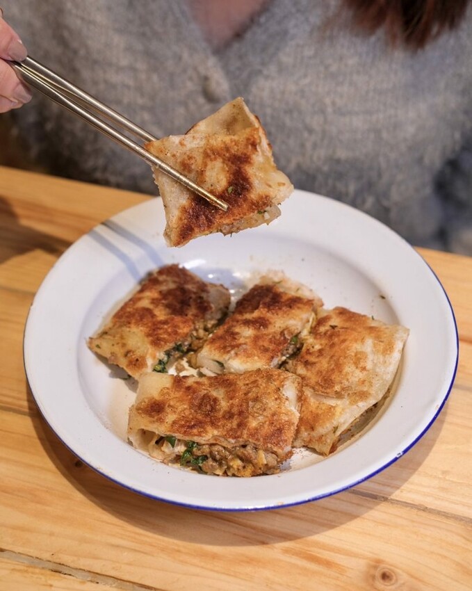 ▼【早安!一餅】的餐點均為現點現做,都是以新鮮食材手工製作而成,豬肉更是選用台灣溫體豬,手桿餅皮在煎盤上滋滋作響,成就出酥脆不油膩的口感,份量也是相當令人飽足。