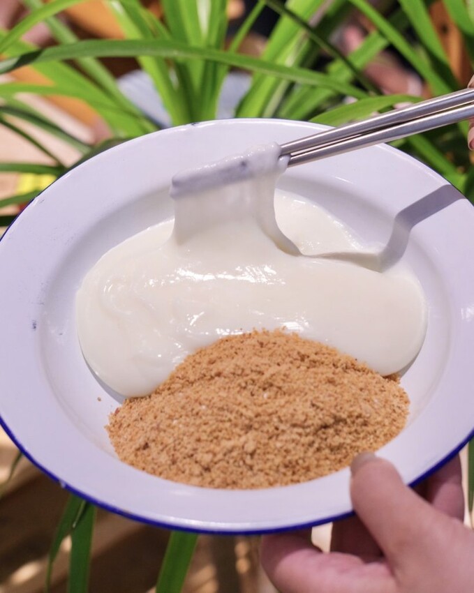 ▼早餐店少見的純手工鮮奶麻糬,以鮮奶純手工製作,搭配香氣十足的福源花生粉,放入嘴裡奶香四溢,口感絲滑不黏牙~
