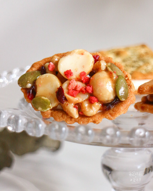 手捏柚香酥脆塔皮,鋪滿核桃、南瓜子、以及大顆飽滿的夏威夷豆、佐以焦糖包裹著, 酥脆香甜的完美比例成就經典口感!口感紮實不黏牙,奶香堅果香十足!
