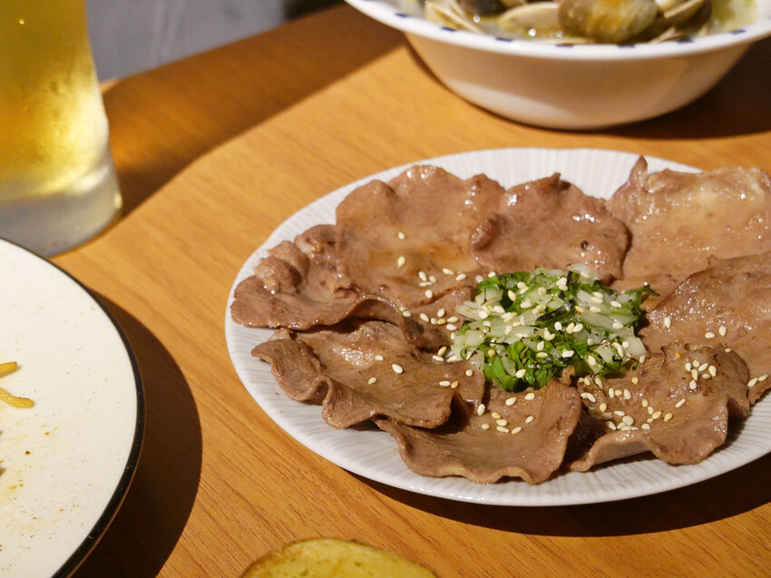 選用牛舌中後段,也就是舌蕊,薄片彈脆的口感令人上癮。再搭配些油花較為均勻的中段,油脂較為豐盈,風味更為明顯。