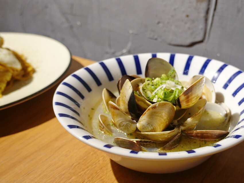 淋上日本清酒清蒸的蛤蠣,每顆都鮮味且香氣十足,而湯底更是精華,在幾杯黃湯下肚後,喝點醒醒酒也是挺不賴的。