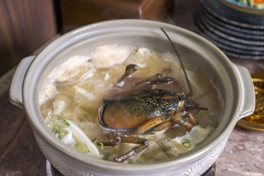 最後將龍蝦頭丟進干貝雞湯中熬,湯頭馬上變得更加鮮甜~