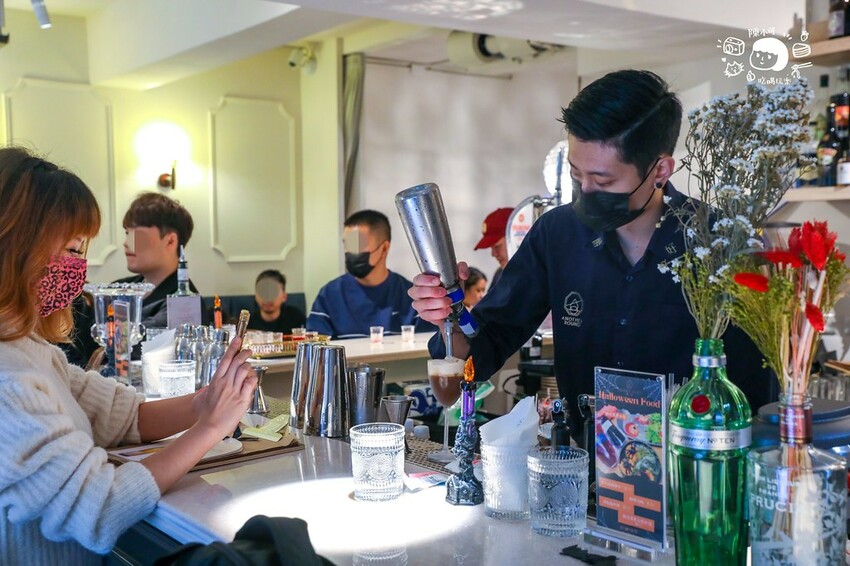以伏特加為基底的花神咖啡館,加了咖啡、烤地瓜還有糖炒栗子,上面則是用大吉嶺紅茶做成的慕斯,調酒過程還用上炙燒的手法,相當吸晴。