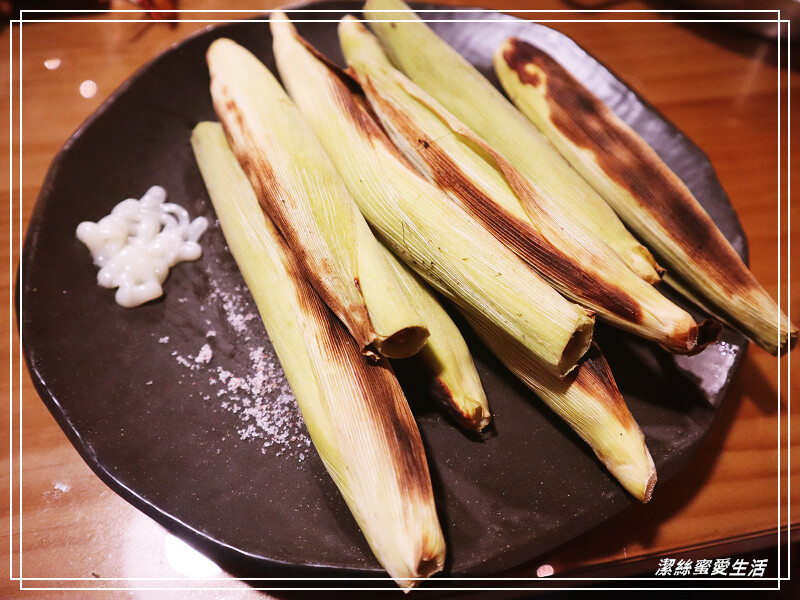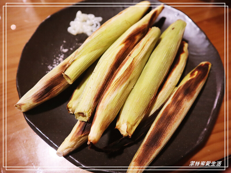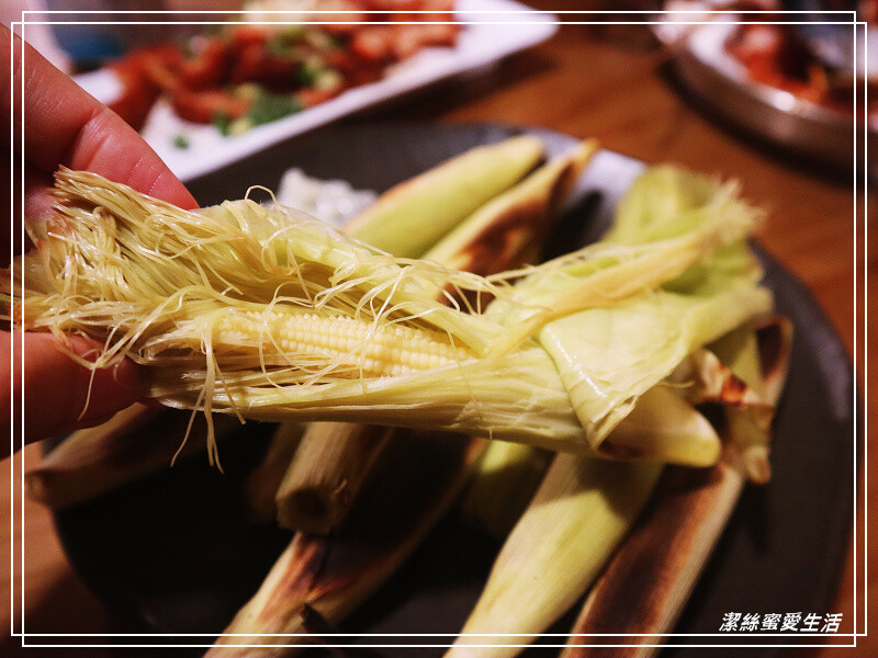 中場來個蔬菜換味解個膩~玉米筍也是我喜歡的,帶殼下去烤,其實不用調味就很不錯,我喜歡單吃玉米筍本身原味的清甜。