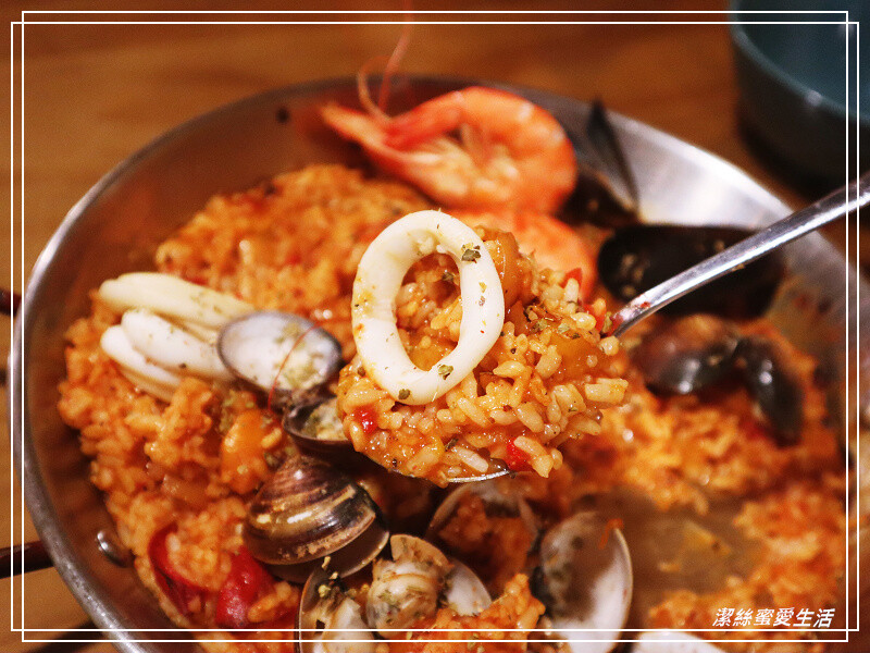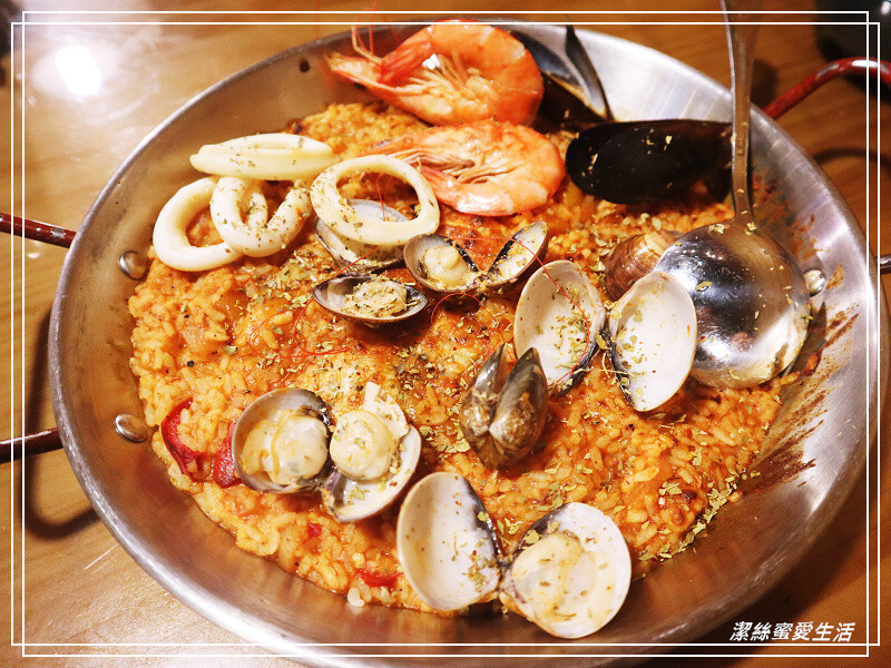 覺得貝蛤蛤的海鮮都給得不小氣,這蝦不同於剛剛火烤,雖沒有炙烤香氣,但和燉飯一起蒸煮,多了蕃茄醬汁的清爽滋味。