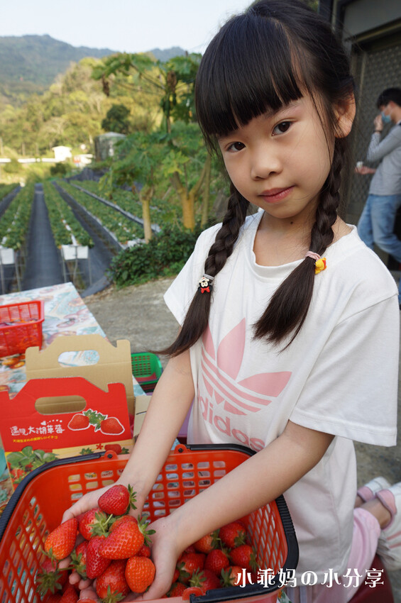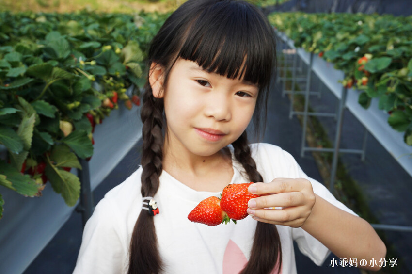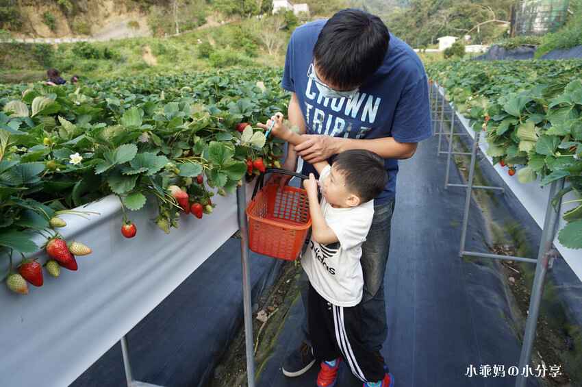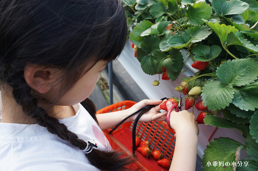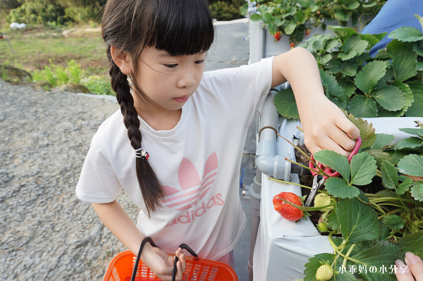 陪伴小孩一起讓她們自己提著小籃子、自己拿剪刀,親手把草莓剪下,那個成就感真的很棒!!!