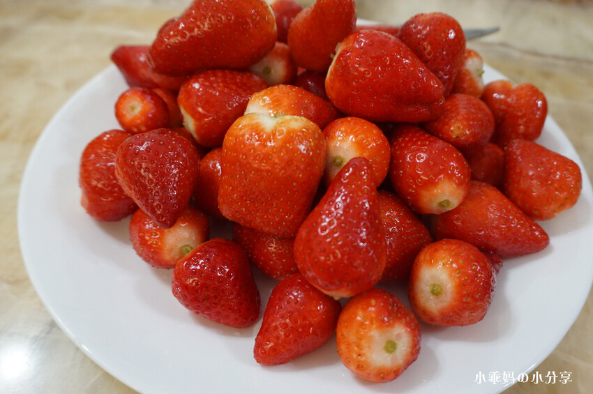 拿回家的草莓馬上洗來給家人們吃~又紅又甜的~~~