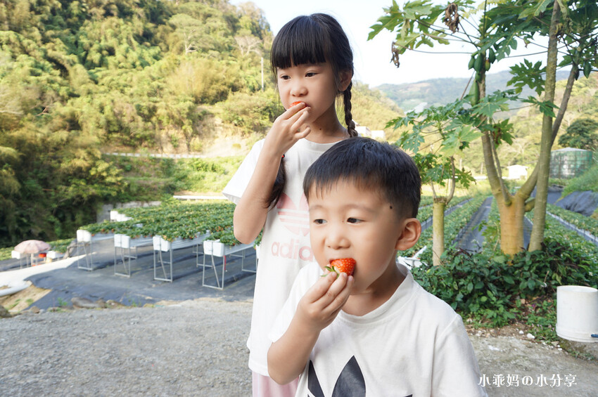 兩姐弟採草莓非常開心~~~親近大自然 這也可以讓他們玩很久 還不錯XD