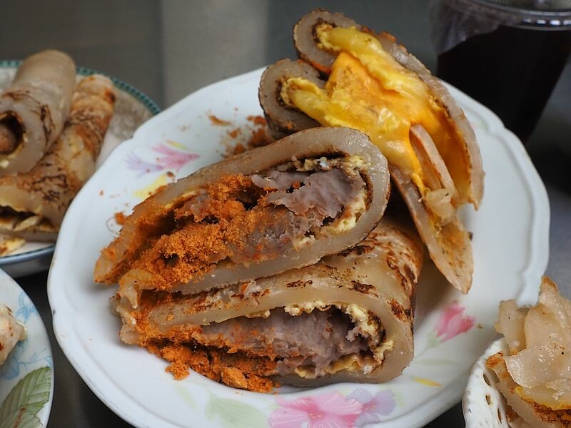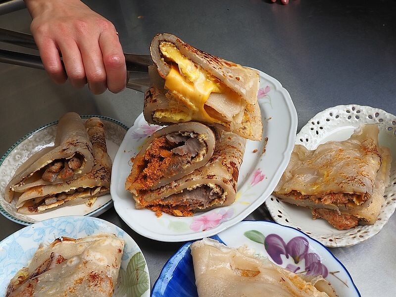 一般的這種粉漿蛋餅裡面,包的可能就是比較簡單的食材