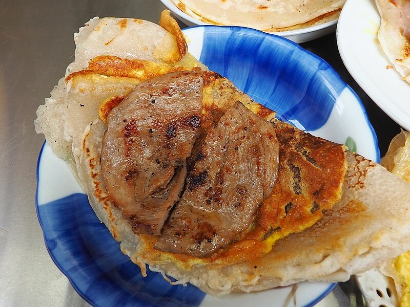 而且他們家的粉漿蛋餅,那個餅皮口感還蠻特別的