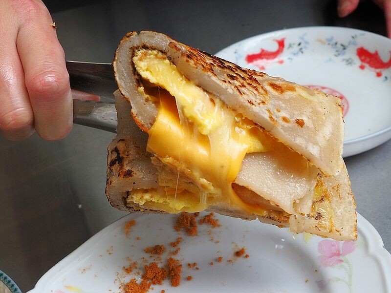 他是粉漿蛋餅無誤,可是咬下去是軟Q的,有嚼勁