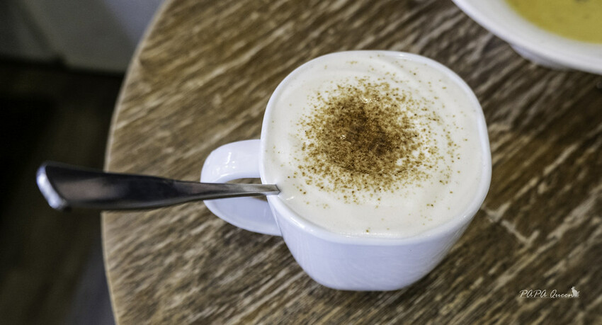底下也是很香豆漿香氣微微的伴隨黑糖香,我猜黑糖有炒過才跟豆奶混一起的吧..隱隱約約有著焦糖香甜感