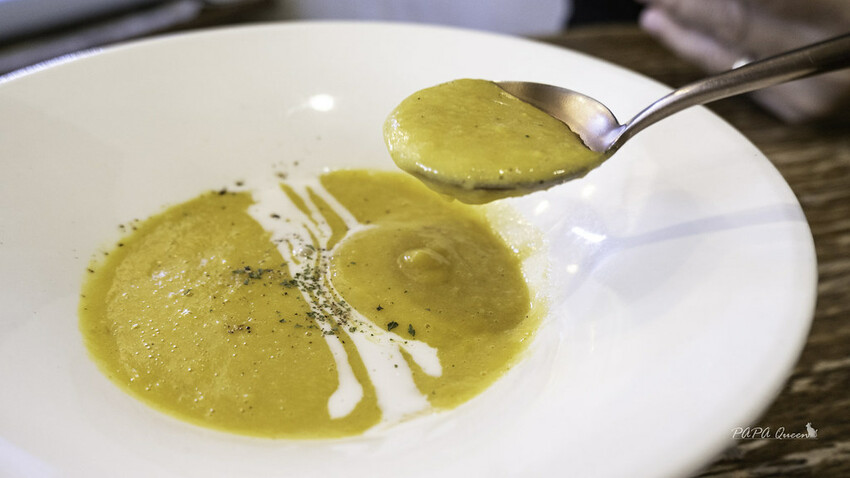 一挖起來幾乎不滴-玉米濃湯有著玉米特有甜香之外似乎還帶著一點南瓜或是地瓜的那種自然甜香!