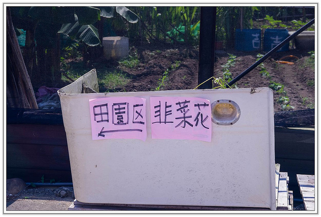 開放的採收體驗區是在古厝的右前方,可以看到可愛農民寫的指標!