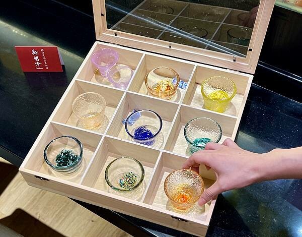 店內有多款漂亮、高貴的清酒杯,