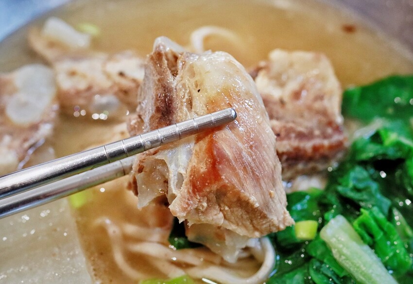 這天我們點了一碗高鈣軟骨麵、一碗茄汁牛肉麵及一些小菜(泡菜、蘿蔔、麻辣鴨血),我們是蠻推薦一滴水麵館的高鈣軟骨麵,湯頭鮮甜順口,燉煮的軟骨也很軟嫩,麵體口感有點像是蕎麥麵,整體吃起來就是健康養生。