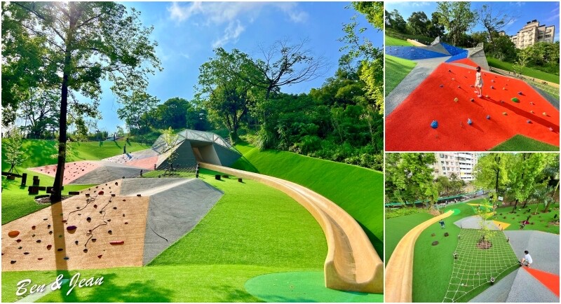 ★全文分享★ 台北親子公園》文山森林公園~趣探險之丘 北市最長50米溜滑梯、攀爬網、攀岩場、滑草場,連結文山景美運動公園1.5公里森林步道,兩個公園一起玩|交通資訊、園區地圖、停車場
