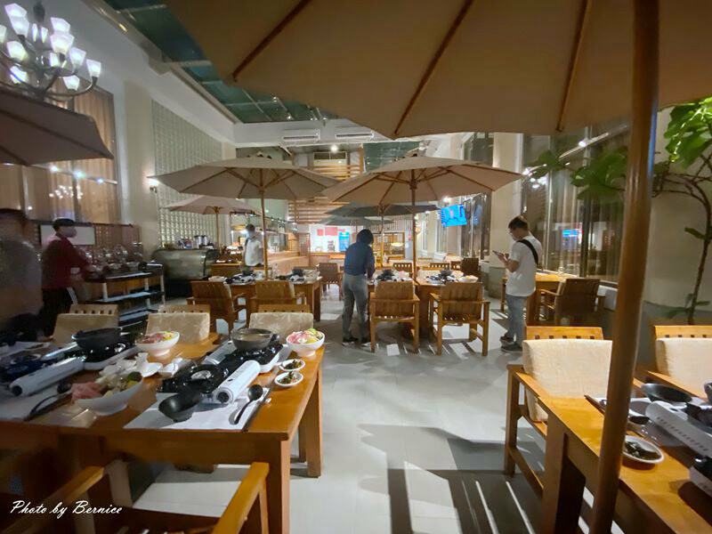 在大廳旁的格拉思思是間全日餐廳,一日三餐都能在此解決,還可以品嚐到澎湖餐桌上的主角-石鮔;晚餐在此品嚐石鮔火鍋,認真說這石鮔有點硬,牙口不好的人吃會有點辛苦;早餐當然也是在這裡享用,中西自助早餐,相較於大型飯店來說選擇是少了點,但不用出門也能享用到澎湖名產黑糖糕還挺不錯的