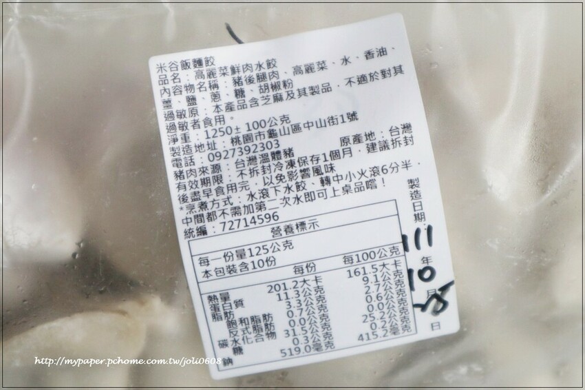包裝上清楚標示水餃的商品資訊