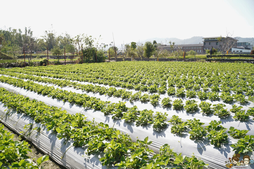附近田野不僅有稻米,還有苗栗最有名的草莓園