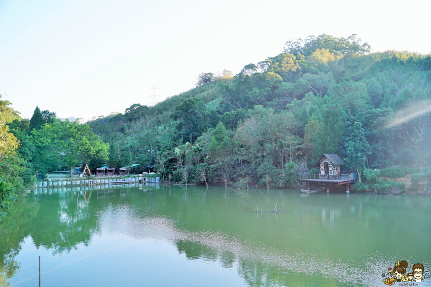 迎向湖面,整個天然風光景緻讓人想把美好時光好好停留於十二寮時光村聚落