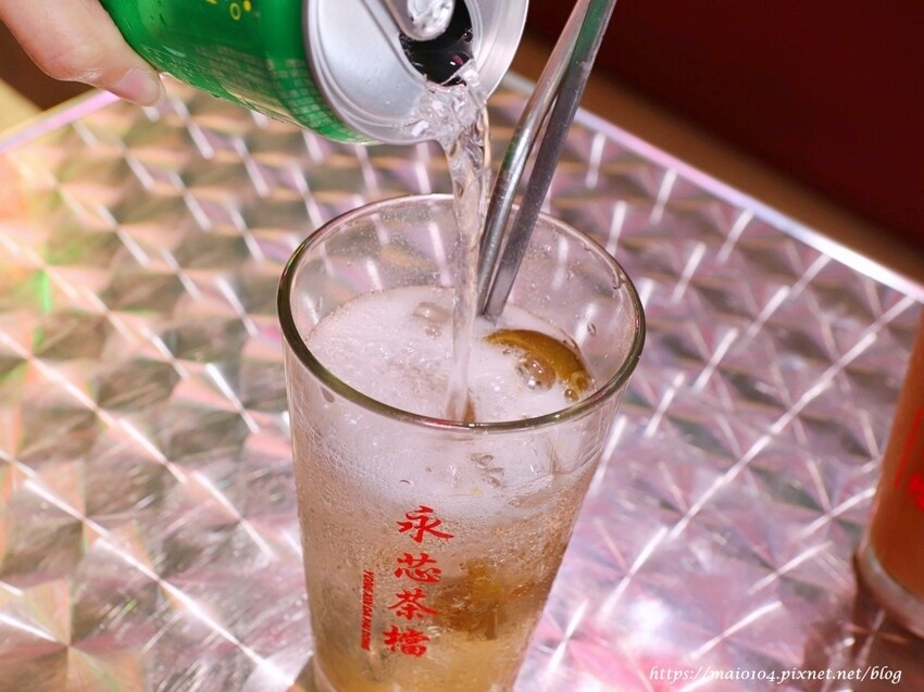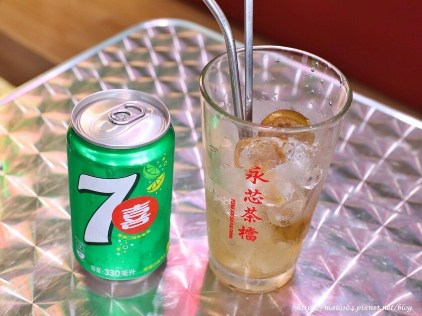 鹹檸七的雪碧會另外上,要飲用的時候再倒入裝有冰塊、鹹檸檬的杯子中