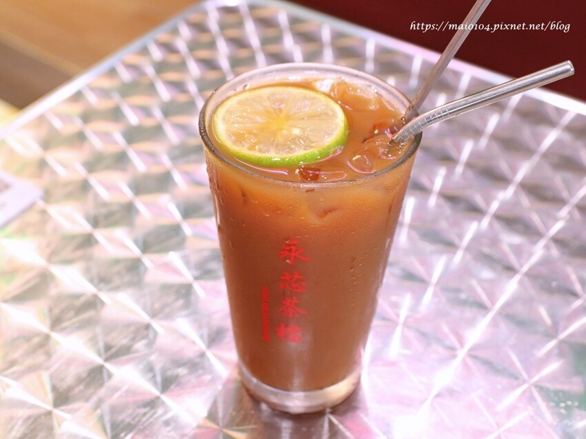 呈現琥珀色的凍檸茶,還可以看到檸檬切片