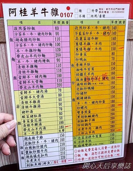『阿桂羊牛雜』菜單(照片僅供參考,菜色及價錢以店內提供為準)
