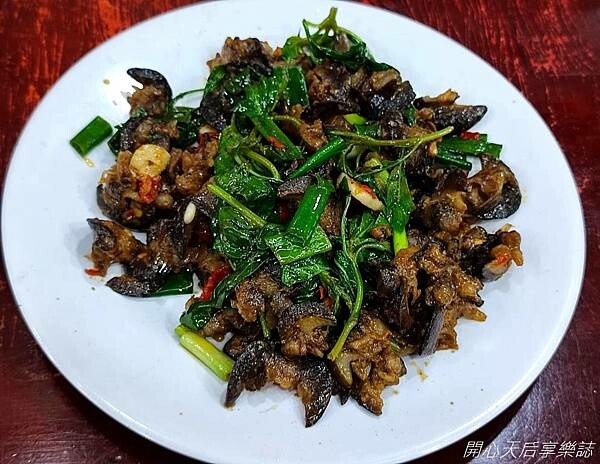 以麻油快炒的羊仙果,飄著淡淡的麻油香氣,含有不少枸杞,感覺好補!