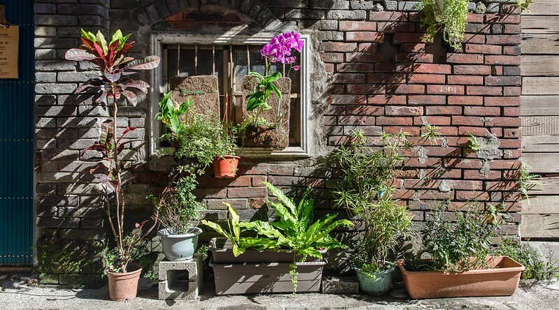 除了老屋散發的天然氛圍外,紅磚牆的四周店家也種了一些綠色植物、盆栽和花花草草,多了一點文青的氣息,隱約也聞到透屋而出的咖啡香。