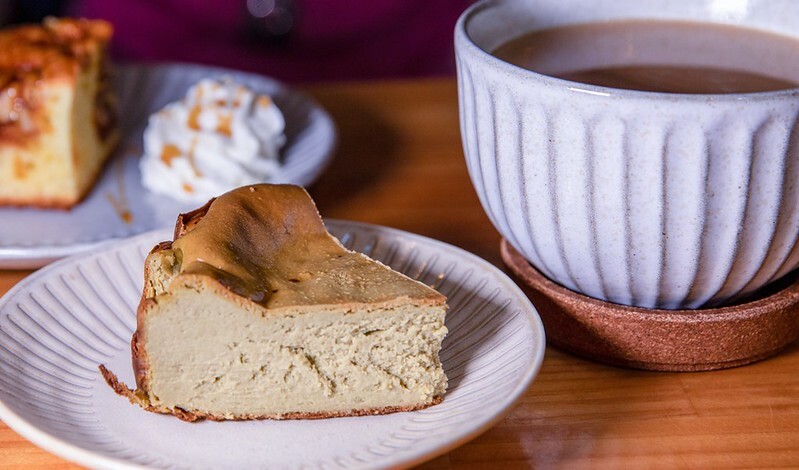 鐵觀音烏龍巴斯克,口感很是綿細,接近重乳酪蛋糕,微烤過的起司香透著緩緩而來的烏龍茶香,建議搭配無糖的黑咖啡,才能感受到不算特別重的茶香,另外就是盡量大口一點,風味會相對明顯提升,大小口、太小片就會像友人說的沒什麼茶香....但猜是她配奶香味道太重。
