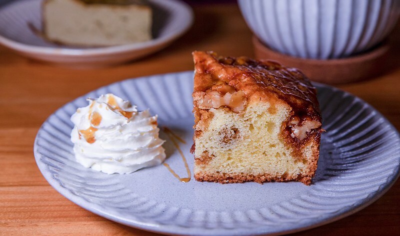 焦糖鹽味核桃磅蛋糕,口感比我想像來的濕潤綿細,磅蛋糕的微甜香很是迷人,核桃像是焦糖漬過,帶著順口的微鹽鹹,再有一抹淋上焦糖醬的鮮奶油,相當不錯吃。