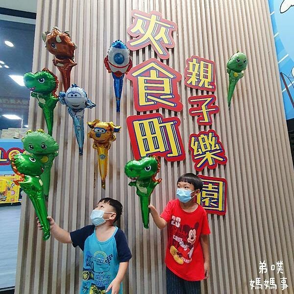 媽媽我一進門還沒回過神,老闆一看到恐龍兄弟就立刻拿出兩顆氣球(立刻擄獲媽媽的心!