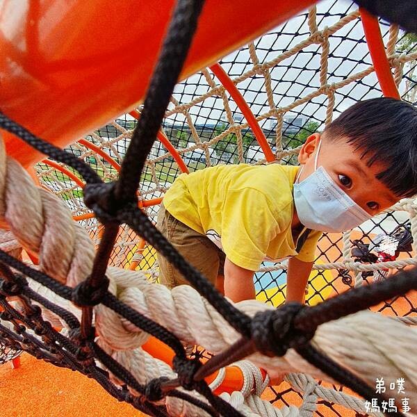 有點挑戰度的攀爬網,快三歲和五歲的恐龍兄弟爬起來是沒問題