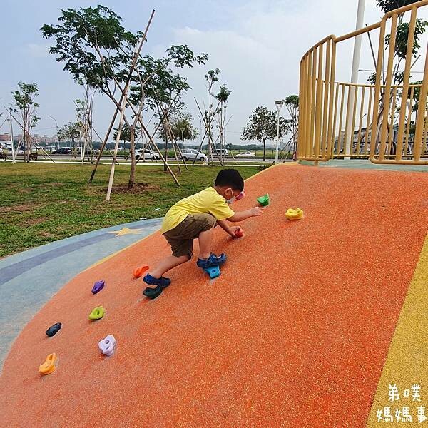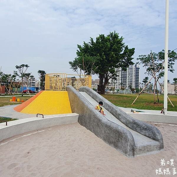 恐龍兄弟有在別的公園玩過,基本上磨石子溜滑梯他們都沒問題,而且也是很喜歡的~
