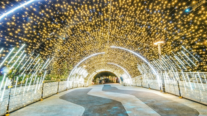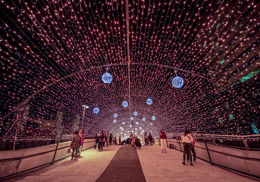 運用光線折射原理,打造夢幻的「彩虹光廊」