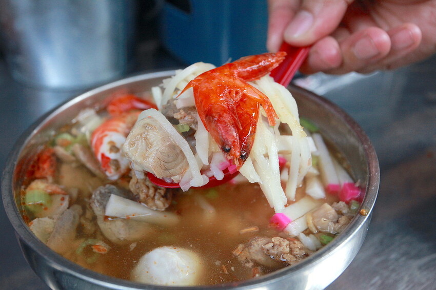 小高不吃蝦子所以請老闆增加鮪魚份量,裡面有鮪魚肉、蝦子、筍絲、魚丸、魚板、蝦猴、胛心肉、五花肉、豆芽菜及芹菜末等,還有淋上滿滿肉燥來增加風味。