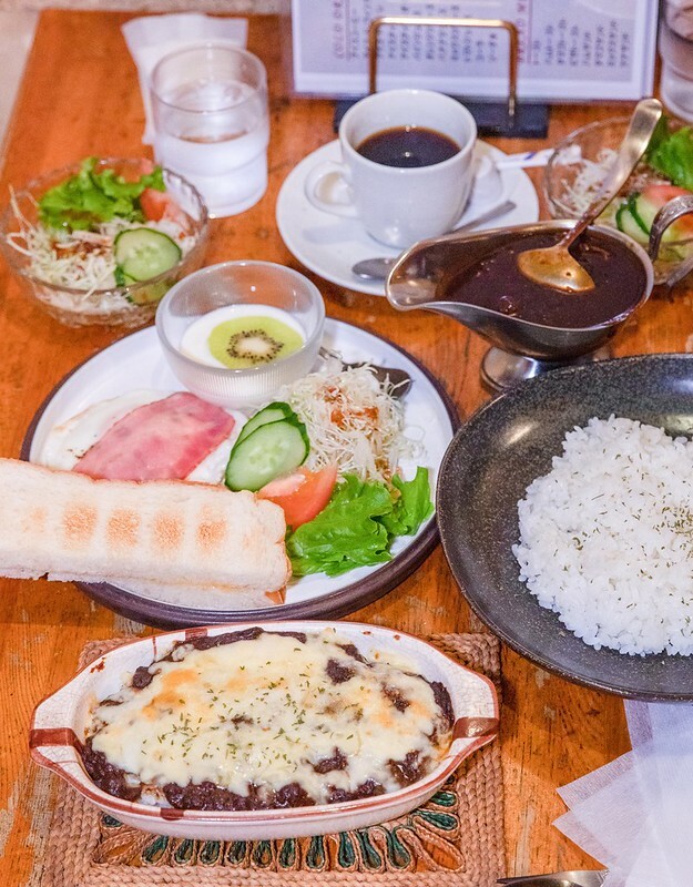 想寫篇「鳥取七味」,但寫完鳥取蟹、鳥取和牛、20世紀梨後,突然不知如何下筆,於是請教鳥取的在地好友,居然得到一個我意想不到的答案「咖哩」,據說鳥取每一年咖哩塊用量冠於全日,故有咖哩王國的稱號。於是問了當晚入住飯店的櫃台,得到四十年老喫茶館的店名,才進屋就滿滿的喜歡,才看menu就知,原來鳥取人早餐是咖啡配咖哩的傳說是真的...喫茶館的早餐居然有四種不同的咖哩可以選擇,你能說鳥取不愛咖哩嗎?