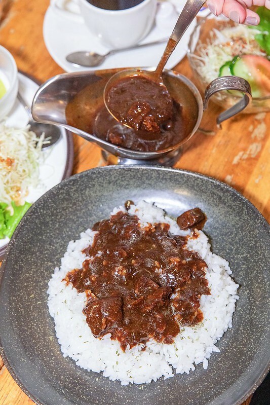 一般來說,這種老夫妻經營的老喫茶店,多半是美式偏重烘培,單喝對時下的年輕人可能有一點苦,但偏咖哩等味道略重的料理,其實蠻和協的。