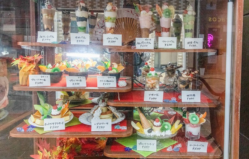 門口的玻璃櫃放著各式餐點的模型,這也是照和風餐廳、食堂喫茶館的必備,就飯店櫃台人員的說法,除了咖啡和咖哩外,這裡的聖代、鬆餅也很有名。