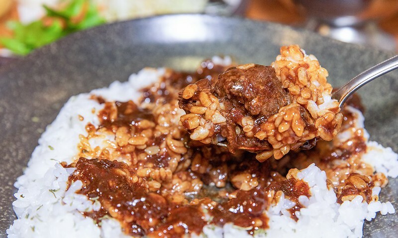 看了一下menu上面寫的是加入水果的咖哩,肉則是燉煮到軟嫩的牛肉,風味偏印度風,酸甜帶著沾唇的微辣,搭配在日本很難不好吃的白飯,一整個好好吃,畢竟我在飯店早餐也很常吃咖哩。但,如果你怕辣,這個吃到後面你可能不行,那印度香料的辣是會越吃越明顯,也越吃越過癮。