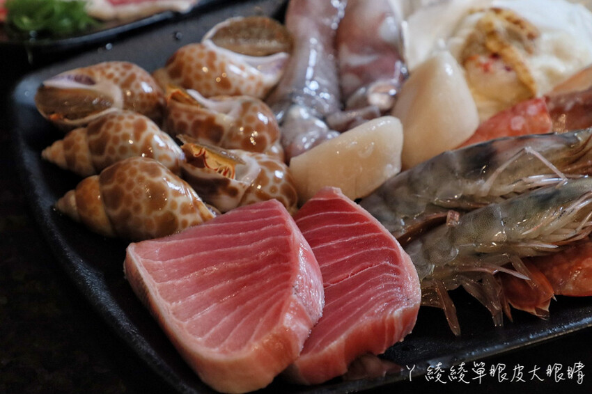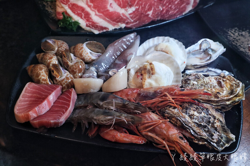 除了各式各樣的肉品,海鮮的選擇也很多,最基本$599元菜單就有鮮烤蛤蜊、薄鮮烤鹽鯖魚炙燒白蝦、鯛魚下巴、黃金魷魚翅、炭燒花枝、加拿大枊葉魚等等,點下去就對了啦!