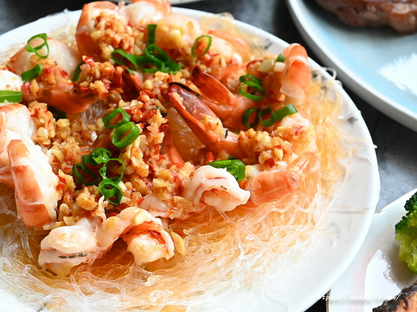 利塔漁市 LITHA的草蝦品質很好,個頭還不小,糖糖將草蝦用成宴席常吃到的蒜蓉鮮蝦粉絲煲,以清蒸方式,底下的粉絲吸附著蒜蓉醬及鮮蝦甜味超好吃,草蝦肉質也相當彈牙鮮甜呢,很讚