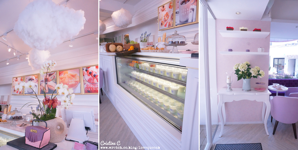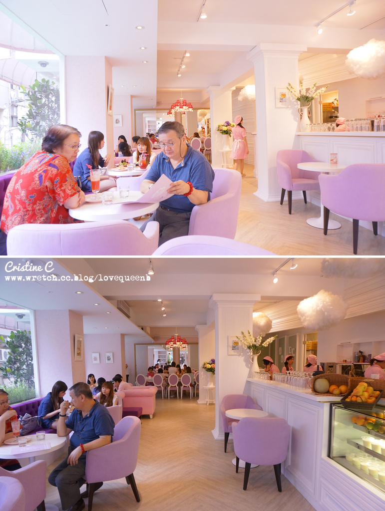 店內的裝潢也非常特別,整間店走粉紫色系